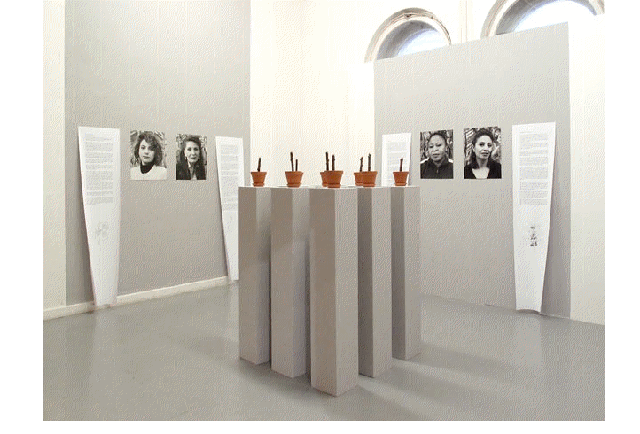 - With a special interview technique the narration becomes scenic, a kind of poeticized and pictorial memory. Drawings depict the favourite plants of the interviewed on the paper rolls. The women have been photographed in front of a corn field. Their portraits very directly view and confront the beholder.